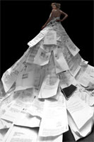Drapart presenta... | Basuramita Del viernes 18 al domingo 20 de mayo de 2007 en el Parque del Cristo de la Salud. Valdemoro. Madrid Vestido burocrático por Nevena En el festival Basuramita llevaré a cabo un proyecto que crearé junto con el público. Mi idea es continuar con la idea de "Dress for sucess" - exponer el vestido realizado a partir de los papeles burocráticos que tuve que conseguir para salir de mi país y quedarme a vivir y estudiar en la Unión Europea estos últimos 6 años. Usando este vestido, hasta ahora, he realizado dos performances en la calle - enfrente de las comisarías que tratan "asuntos de extranjeros" en Granada y Barcelona. Invito a todos los visitantes que aporten fotocopias de sus documentos - sus propias pesadillas burocráticas. Estos nuevos papeles los pegaremos a mi vestido, para hacerlo así mucho mas grande. De esta manera, además de reflejar mi historia personal, el vestido ganará un contexto más global. Además del "Vestido burocrático" en Basurama crearé un vestido más. Organizaré un pequeño concurso/experimento llamado "Tu producto favorito" e invitaré a todos los niños y niñas presentes a que aporten embalajes vacíos de sus productos favoritos (yogures de distintos sabores, etc.) para crear juntos un nuevo vestido - ¡de basura en color! BASUGranja por Silvia Ferrari Crearé en directo una pequeña granja reciclada con sus animales, plantas y flores - todo realizado con envases de plástico y otros materiales de recuperación. Habrá animales fantásticos y flores realizadas a partir de botellas, formando un césped artificial, igual una pequeña valla de madera, un árbol, un charco y poco a poco ir poblándolo con las cosas que se crearán allí mismo. Parte de la instalación la trabajaré yo sola y otra parte la realizaremos trabajando con los niños y las niñas que quieran dejar ahí sus piezas. También se podrá crear un pequeño jardín de flores de plástico, en el que puede participar todo el que quiera, de modo que vaya creciendo en los tres días. |