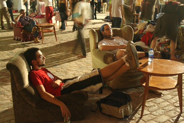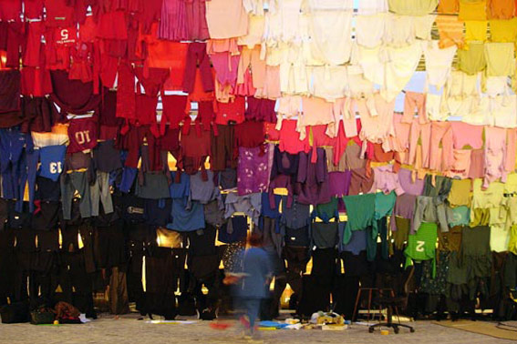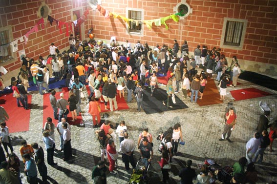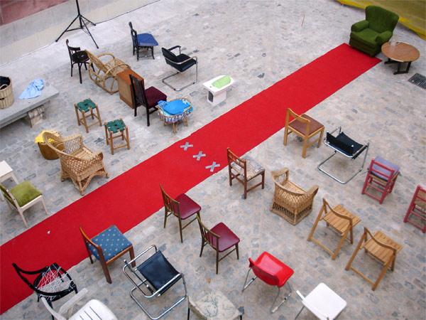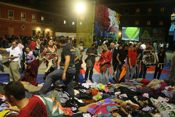 Se regala plaza | Basurama en La Noche en Blanco de Madrid 2007 22 de septiembre 2007. De 21.00h a 7.00h en el Patio Norte del Espacio Cultural Conde Duque. Madrid. Objetivo Todo en unas pocas horas. Esa es la máxima con la que funcionan las Noches en Blanco de toda Europa. Un gran derroche de recursos, humanos, materiales y económicos, destinado a sacar a la gente a la calle por una noche para enfrentarla a las más diversas propuestas culturales. Basurama enfocó el encargo con un objetivo principal: evitar el usar y tirar, la facilidad de consumir compulsivamente (para obtener resultados cuanto más espectaculares mejor) sin pensar en el después de los objetos adquiridos. Como casi siempre hacemos, procuramos que esta dificultad autoimpuesta derivara en impulso creativo y en propuesta interesante. Así surgió "Se Regala Plaza", un evento que debía integrarse dentro del proyecto Plaza Noches Blancas Europa.Distintos proyectos de otros artistas y otros eventos de la Noche en Blanco se desarrollaron en una escenografía diseñada por Basurama para el patio norte del Conde Duque en base tanto a elementos reutilizables (andamios, lonas, etc.) como a elementos a reutilizar (ropa, mobiliario recuperado, etc.). Se propuso un encuentro multidisciplinar entre visitantes, artistas, músicos y una serie de objetos rechazados que, con sistemas compositivos sencillos, se transformaron nuevamente en funcionales a los ojos del gran público lo que derivó en una gran aceptación de la propuesta así y en un éxito de participación. Proyecto Para la compatibilización de los diversos eventos que debía acoger la escenografía propuesta por Basurama decidimos subdividir el espacio en cuatro zonas principales: la de la actividad de los grafitteros, el cine para la proyección de los cortos de Future Shorts, la zona de conciertos y el espacio donde tendría lugar un taller de costura itinerante (si quieres saber más de estos proyectos están resumidos en la página de la propuesta). Todas ellas tendrían su particular interpretación pero estarían integradas en la idea principal de "Se Regala Plaza". Construimos con los andamios alquilados 100% reutilizables una serie de piezas, unas más cerradas y otras más abiertas, que acogían estas diversas actividades y que dialogaban entre ellas. A los andamios se vino a sumar la ropa cedida por Humana como hilo conductor del proyecto y como máximo exponente de lo que puede dar de sí otorgar una segunda oportunidad a los objetos desechados. Basurama activó la posibilidad de esta nueva oportunidad cambiando el aspecto de la ropa usada con acciones tan sencillas como la ordenación cromática. Para completar la transformación del patio se proyecto una iluminación estudiada para los diferentes espacios según sus necesidades, se amuebló el recinto de proyección de cortometrajes con objetos encontrados en la calle gracias a un par de días de Safaris Basura, se construyeron unos saloncitos amueblados para disfrutar del espectáculo y se propuso un cartel musical que diera vida al patio y que aunara ambientalmente las actividades que allí se iban a desarrollar. Acción La noche empezó mal, con una ligera lluvia que hizo su aparición a la media hora de abrir el patio. Sin embargo, en cuanto ésta cesó, el público que llenaba las calles de Madrid se dejó caer también por el patio norte del Conde Duque para conseguir que la intervención de Basurama fuera todo un centro de participación ciudadana. Por su carácter efímero propusimos que la gente pudiera llevarse toda la ropa que quisiera a partir de las 21.00h y todos los muebles que fueran capaces de acarrear a partir de las 24.00h, de manera que la plaza se fuera desmantelando poco a poco y que cada persona pudiera llevarse un recuerdo de esa noche tan particular dándole una nueva vida a un objeto rechazado por otro. El patio se convirtió en un enorme probador donde cada uno se expresaba vistiéndose de la manera que su imaginación le proponía. Foto06 Los grupos musicales (como Rabato con sus Game Boys) fueron dándole vida a esta orgía de transformación y las ganas de fiesta con ayuda de el buen ambiente reinante propiciaron escenas que siempre llevaremos en nuestro recuerdo: una gran comba colectiva, un pressing catch sobre una montaña de ropa, una batalla de calzoncillos, ... Con decir que Gallardón atravesó el patio y no se atrevió a acercarse al rincón donde una marabunta humana desbocada lanzaba batas de guatiné contra camisas de franela... Al día siguiente, como siempre, recogida. Con el regusto de haber hecho algo interesante, diferente, emotivo y, sobre todo, divertido. Y con la esperanza de fomentar la reflexión acerca de lo que solemos llamar basura y del poco valor que le otorgamos. A todo esto se le añadió la satisfacción de tener que recoger mucho menos de lo que nos llevamos al patio para construir la propuesra puesto que desaparecieron más de la mitad de los muebles y, pásmense, cuatro de las seis toneladas de ropa que Humana nos cedió para la ocasión. Notas al margen Se grabaron bastantes vídeos en la noche y la gente los colgó espontáneamente en YouTube. Puedes verlos en este post de Juan escrito en el blog de Basurama. Proyecto de Basurama. Organiza Área de Gobierno de Las Artes Colaboran Oficina del Parlamento Europeo y Representación de la Comisión Europea en España Otros proyectos relacionados de Basurama MadridTelaPone. Junio 2006 |
