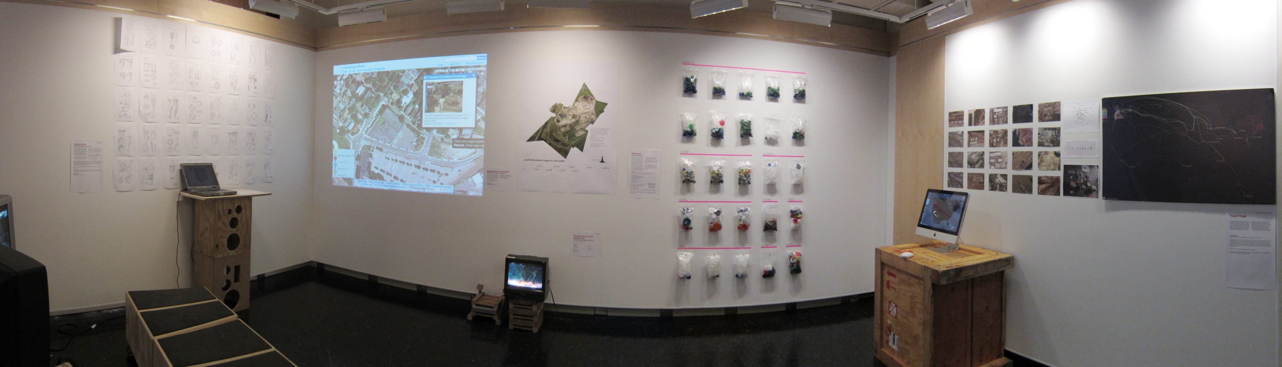 The collective exhibition was opening on Friday night, the day the workshop was starting. We displayed previous related maps and a note on the wall saying that we would print the results of the workshop.
