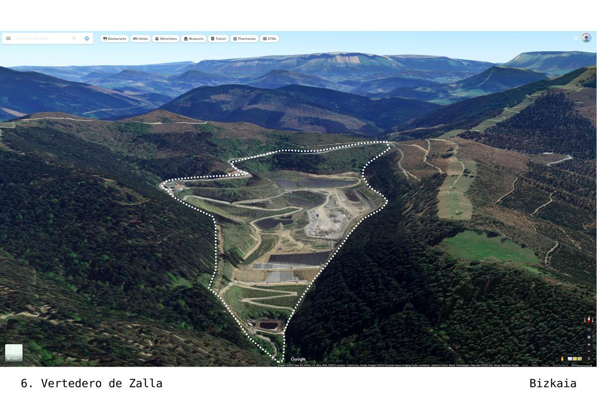 El último de esta serie es el vertedero de Zaldibar (2011-2022), se muestra a través de un díptico que lleva por nombre “A las cuatro de la tarde del 6 de febrero del año 2020 un vertedero se derrumbó, invadiendo la autopista A-8 a su paso por Zaldibar, sepultando a dos de sus trabajadores”. La instalación deja sin relatar todo lo que pasó después y lo que se ha descubierto sobre el vertedero y que ha puesto de manifiesto las irregularidades en los sistemas de gestión de residuos en Euskadi.